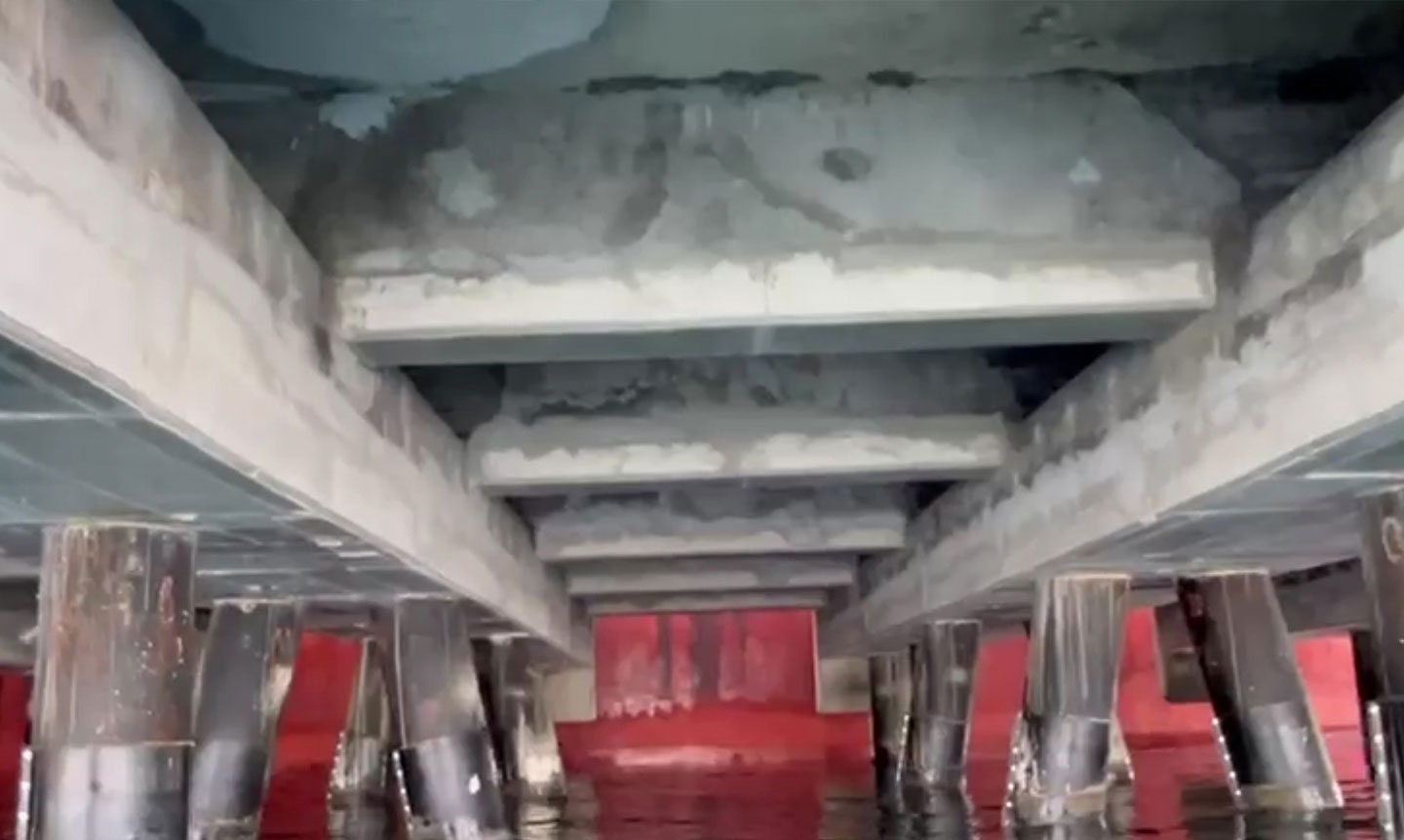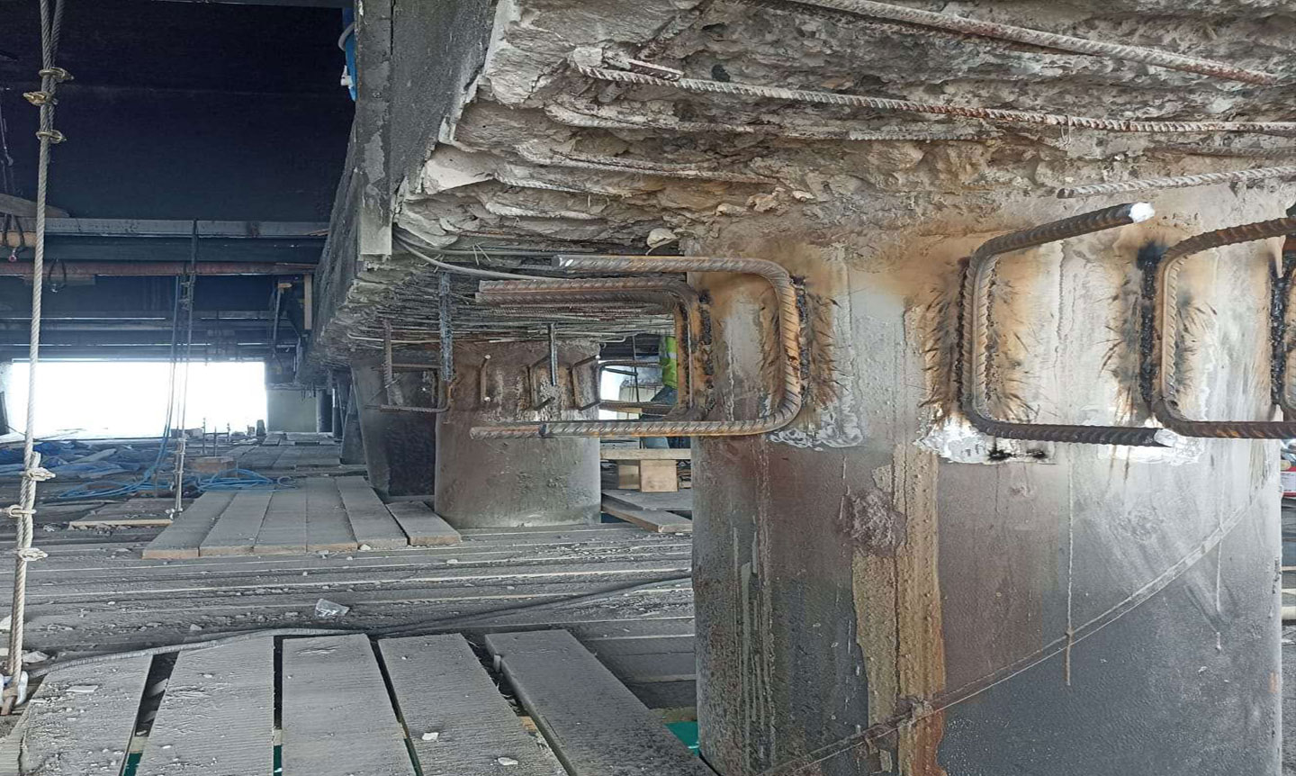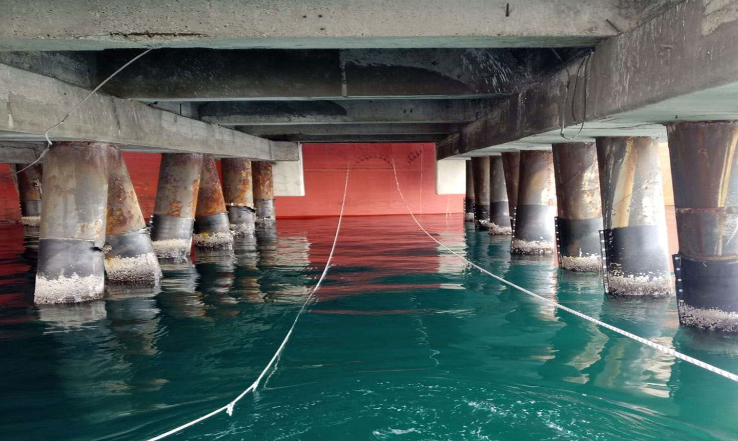 5.600 m²’lik alanda iskelenin kazıklara oturduğu başlık kirişleri ve diğer tali kirişler betonerme olarak güçlendirilmiştir.